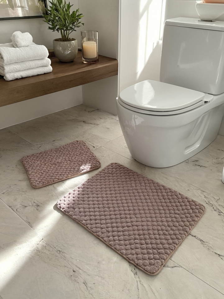 2'li Toz Pembe Banyo Paspas Takımı – Klozet Takımı (Kaymaz Tabanlı)