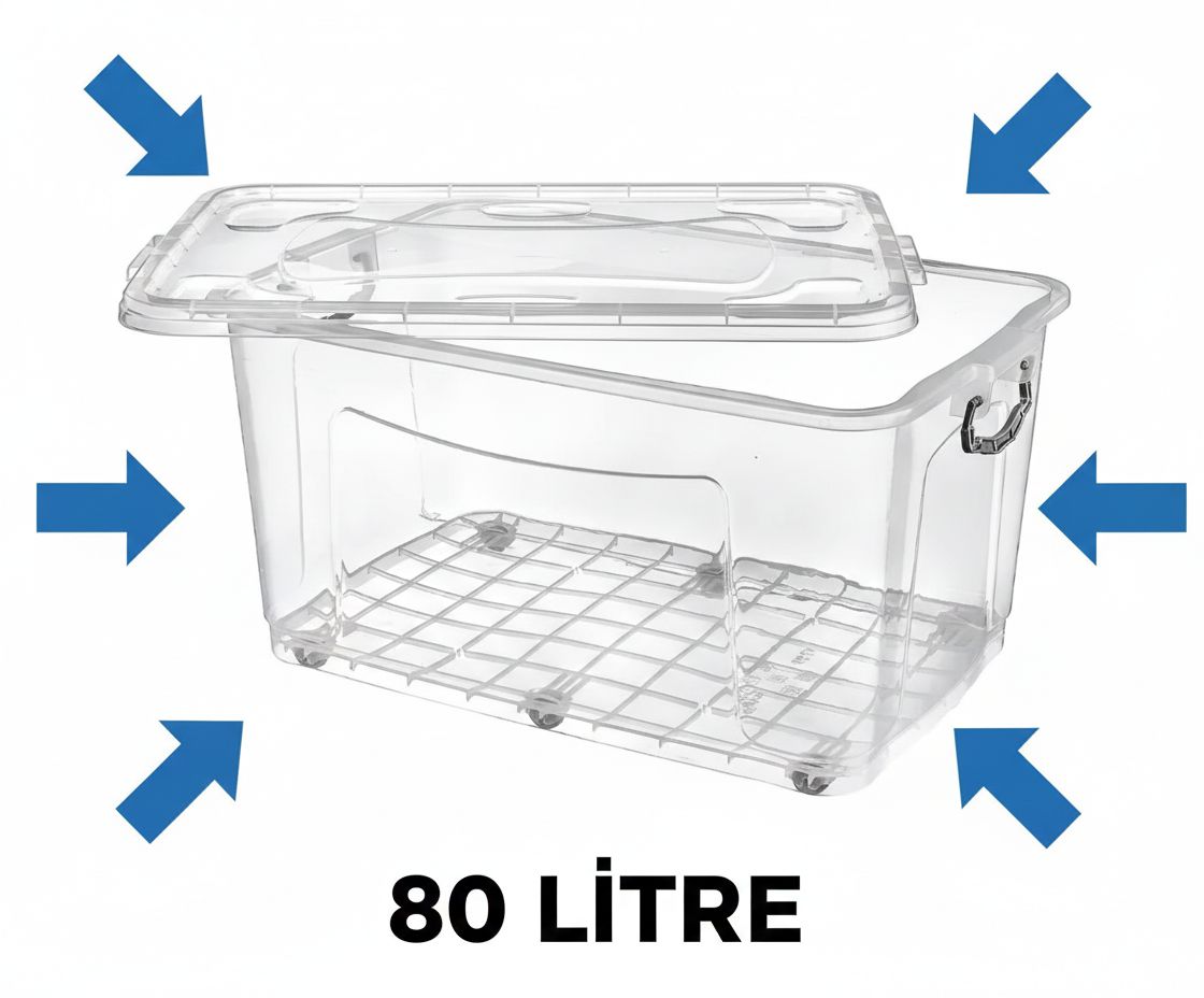 Geniş hacmiyle dikkat çeken 80 Litre Tekerlekli Şeffaf Saklama Kabı, fazla eşyalarınızı düzenli ve güvenli şekilde saklamanız için tasarlanmıştır. Büyük boy yapısı sayesinde tekstil ürünleri, yorgan, battaniye, oyuncak, erzak ve sezonluk eşyalar için ideal depolama alanı sunar.