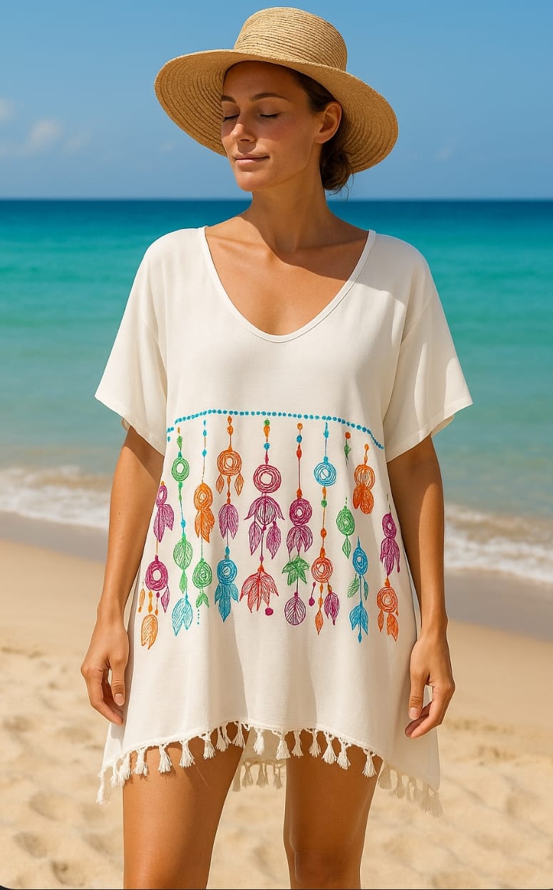 Yaz mevsiminin enerjisini yansıtan Bohem Tarz Kadın Plaj Elbisesi, tarzınıza şıklık ve rahatlık katmak için ideal bir seçenek. %100 pamuk ve viskon karışımından üretilen bu elbise, hem hafif yapısıyla hem de nefes alabilir özellikleriyle sıcak günlerde rahatlıkla kullanabileceğiniz bir parçadır.