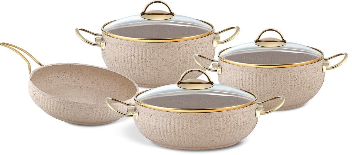 Modern mutfaklar için tasarlanan Bej Renk Tencere Seti, hem estetik görünümü hem de dayanıklı yapısıyla mutfağınıza şıklık katar. Zarif bej rengi sayesinde her mutfak dekorasyonuna uyum sağlar.