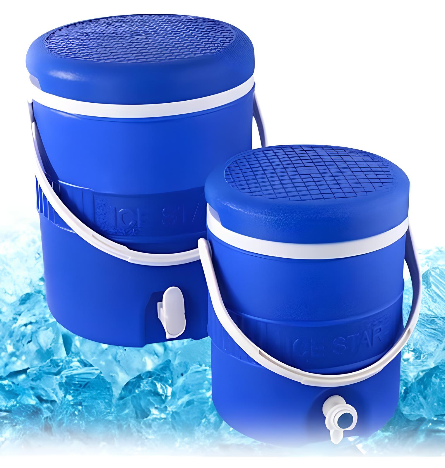 Mavi Renkli Plastik İkili Termos Seti – Pratik Kullanım (6 L ve 16 L)
