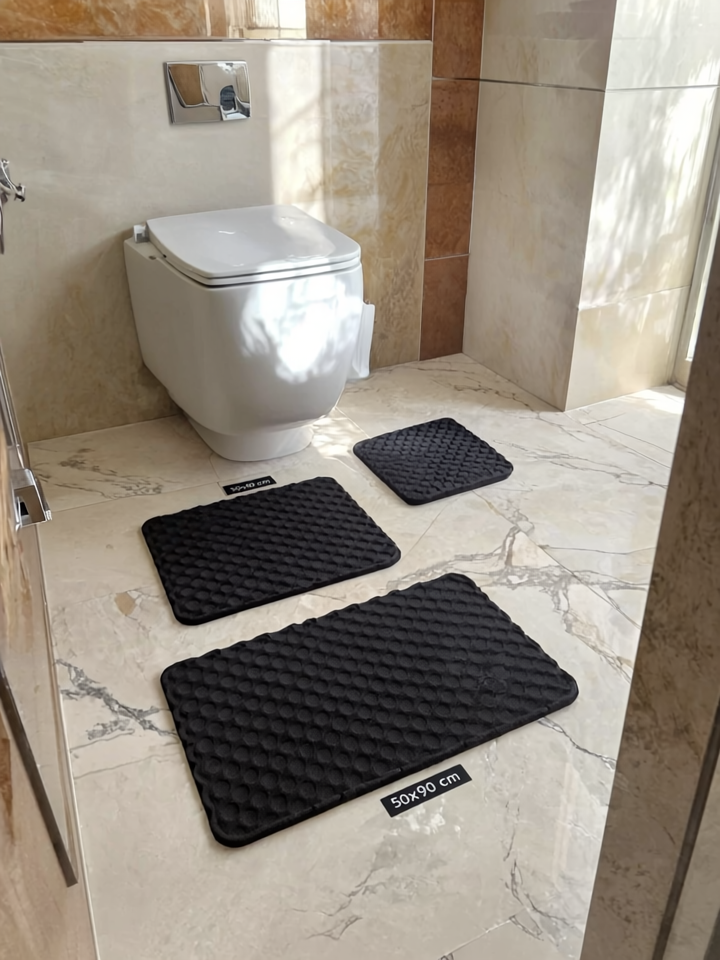 - Farklı Boyut Seçenekleri: Set içerisinde yer alan 50x90 cm ve 40x50 cm boyutları, klozet etrafındaki alanı mükemmel bir şekilde kaplar.
