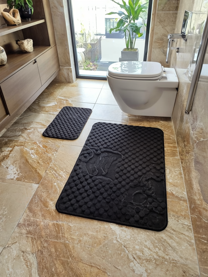 Modern Siyah Klozet Takımı - 2’li Şık Banyo Paspas Seti